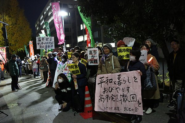 12月4日晚,数百名日本民众在日本首相官邸前再度举行集会,要求高市早苗撤回涉台错误表态。 IC Photo